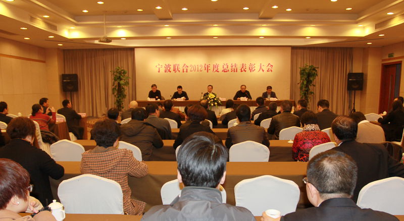 2013年2月6日上午,寧波聯合集團股份有限公司在戚家山賓館舉行2012年度總結表彰大會。公司總部全體員工、直屬企業和B類企業領導班子成員以及公司2012年度先進單位代表和先進個人代表近百人與會。公司領導王維和、陳建華、戴曉峻、周兆惠、董慶慈在主席臺就座,監事會主席陳建華主持了本次會議。