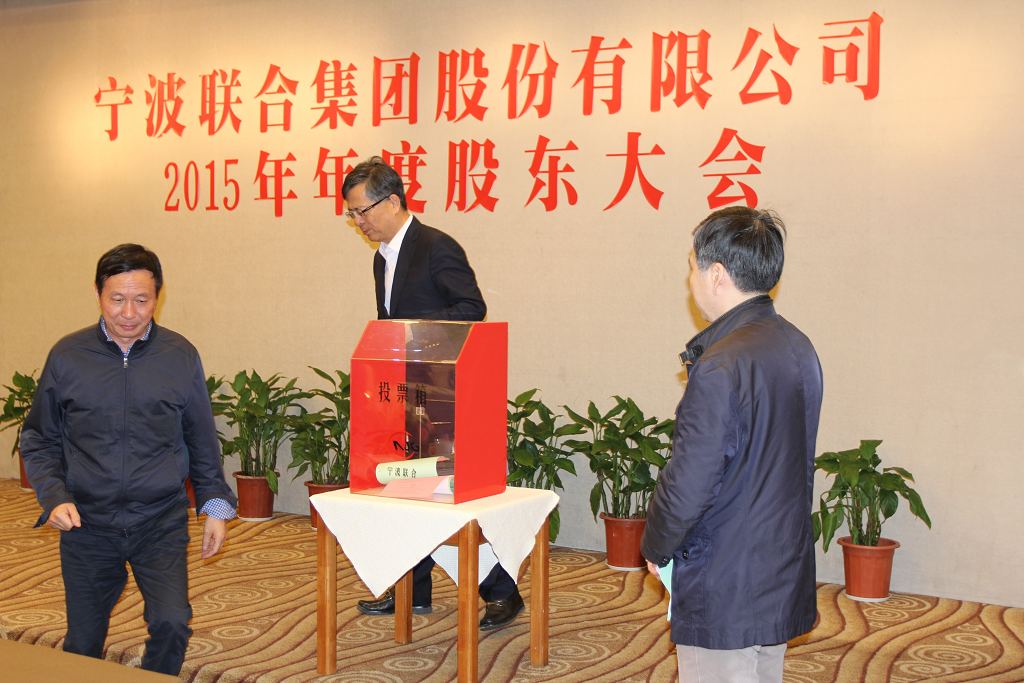 寧波聯合集團股份有限公司2015年度股東大會于2016425日在寧波北侖區戚家山街道東海路20號戚家山賓館召開,會議由董事會召集,董事長李水榮先生因工作原因未能出席本次股東大會,會議由副董事長王維和先生主持。本次股東大會采用現場投票與網絡投票相結合的表決方式,出席會議的股東和代理人14人,所持有表決權的股份總數97,413,191股,占公司股份總數的31.33%,其中:出席現場會議的股東和代理人共6人,所持有表決權的股份數96,802,508,占公司股份總數的31.14%;通過網絡投票出席會議的股東人數共8人,所持有表決權的股份數610,683股,占公司股份總數的0.19%。本次會議的召集、召開及表決程序符合《中華人民共和國公司法》和公司章程的有關規定。