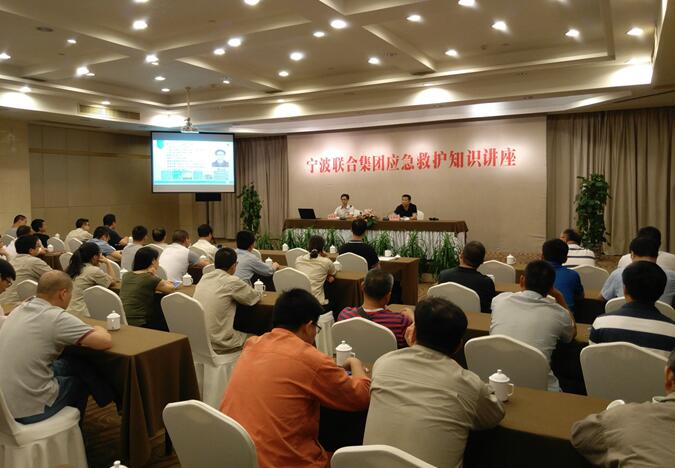 隨后,鎮海區紅十字會戴遠波老師為大家作了以“人身應急救援”為主題的培訓。在培訓過程中,戴老師運用與員工互動的方法,通過多媒體演示與模擬人心肺復蘇法相結合的方式進行授課,詳細講授了救護概念、心肺復蘇、創傷救護、現場意外的救護等課程,并向在場員工演示了心肺復蘇術、人工呼吸法、傷止血及包扎法等緊急救護技術。此次應急救護知識講座為集團員工提供了一個了解和學習救護知識的有效平臺,對提高員工應急救護的知曉率,增強廣大員工安全救護意識具有十分重要的意義。相信在今后的生活中,大家能夠將應急救護知識付諸于實踐。